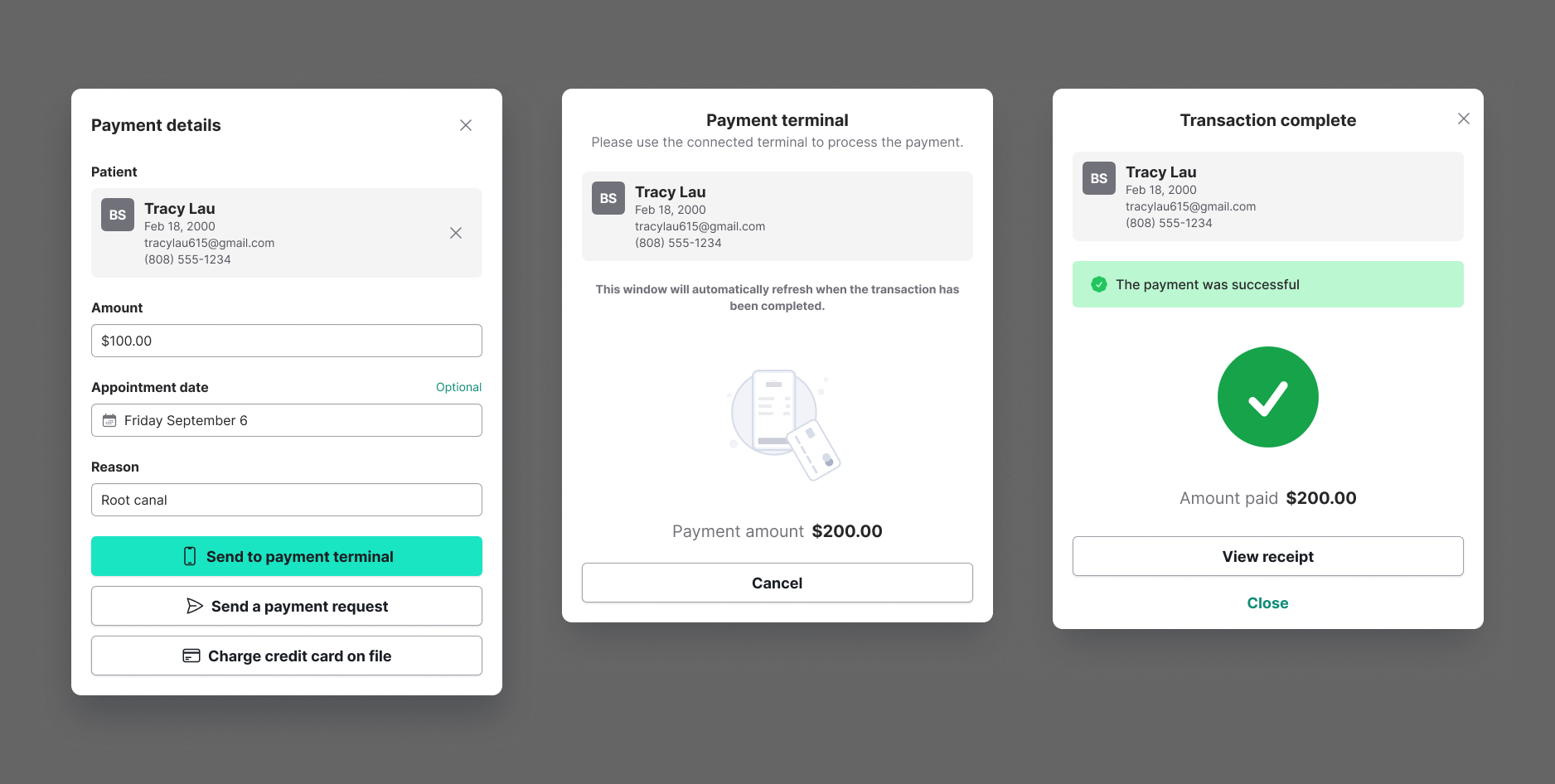 NexHealth is a patient experience platform for medical and dental offices. While we offered text-to-pay and saved-card payment options, we didn’t have a good way to handle in-office payments, something we assumed was a small part of our users’ needs.